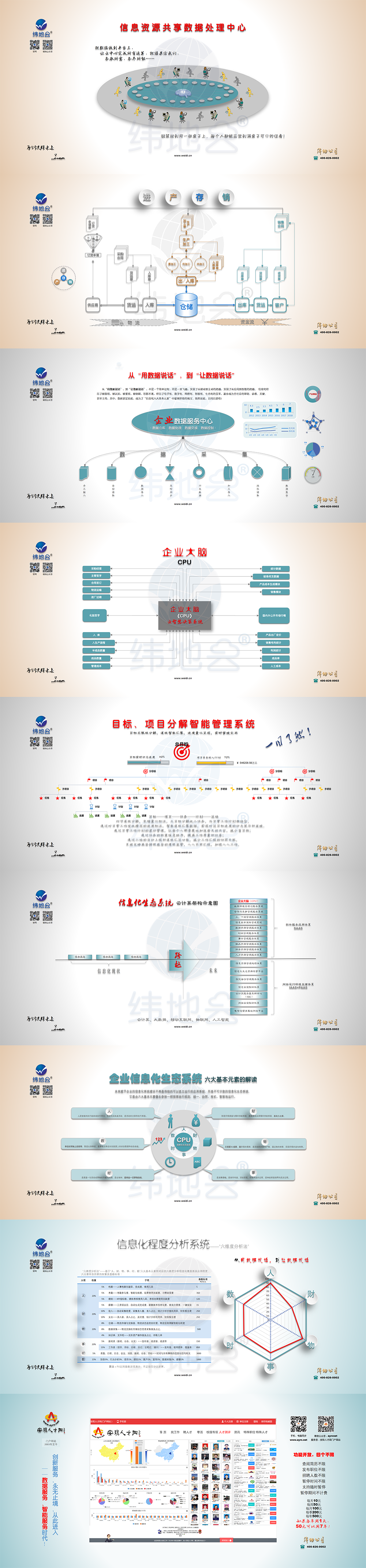3. 企业数据服务中心:  从“用数据说话”,到“让数据说话”,不是一个简单过程,而是一次飞越,实现了从被动到主动的跨越,实现了从应用到智能的跨越。 信息化经历了被忽视,被认知,被重视,被依赖,形影不离,经历了电子化、数字化、网络化、智能化、生态化的变革,逐步成为全社会的基础、必备、关键、甚至主角,其中,数据更是如此,成为了“信息化六大基本元素”中最赋价值的瑰宝。既然如此,且用且珍惜!
